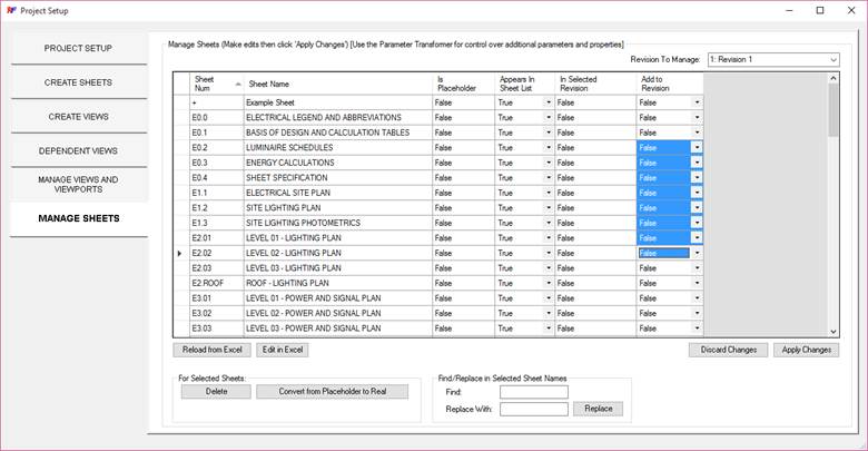 o If you would like to quickly create a print set in Revit based on sheet names, or other parameters, there is a function in the Project Setup Tool, Manage Sheets tab that can help you do this.