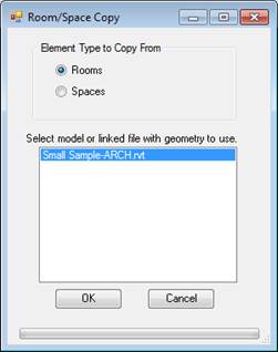 4. After selecting the linked model to copy from, press ‘OK’ to create spaces in the same location and with the same parameters as the elements in the linked model. Note that only a number of compatible parameters will be copied when translating from rooms to spaces. These include, of course, the room name, number, and height.
