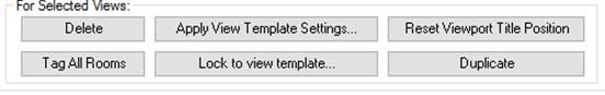 9. In this tab, there are also buttons to quickly perform other functions such as applying multiple view templates to multiple views, locking view templates, deleting, or even duplicating multiple views. There is also a tool to tag all rooms in selected views.