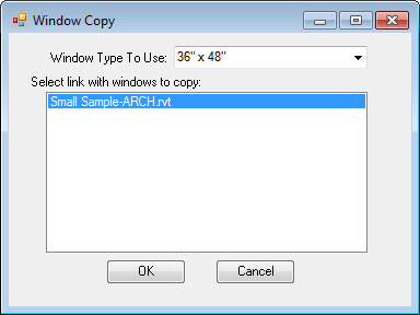 3. Select the window type of a loaded window that you would like to create at locations matching the existing linked model locations.