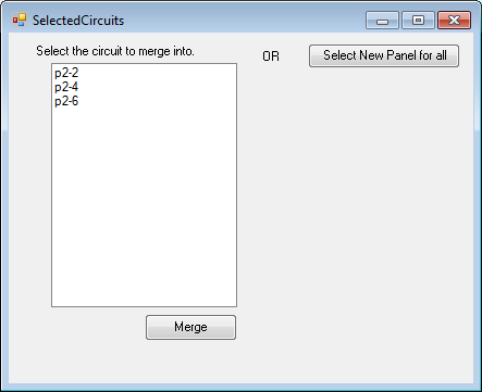 3. Choose one of the selected circuits and use the ‘Merge’ button to move all of the selected elements to the selected circuit.