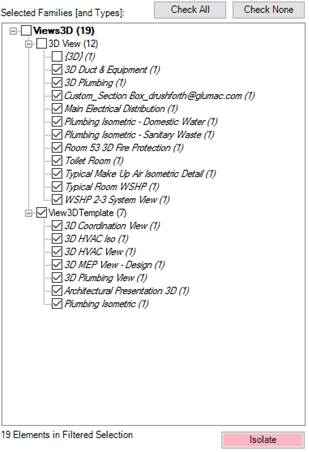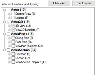 ii. Similarly, when exporting to NWC, you can select individual views when creating a preset in the tool, but without a preset, the RF Automator defaults to export the whole project.
