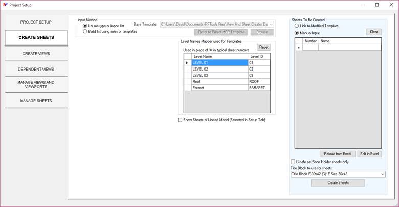 a. The second tab in Excel contains the lists of views and sheets to create per project and per level. These can be applied to any project with any number of levels. The first tab of the excel file is where the tool temporarily stores the final lists to be created per the project and these lists get overwritten each time a new list is generated