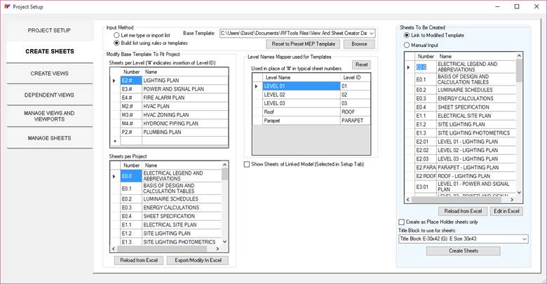 c. As you edit the lists of sheets per level or sheets per level, the list of sheets to create (at the right) is automatically updated.