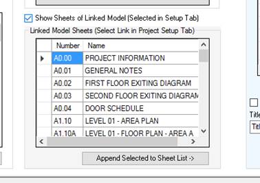 a. You also have the option to append sheet numbers and names from the linked model to your model.