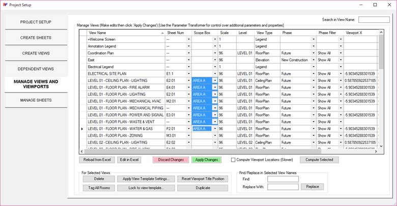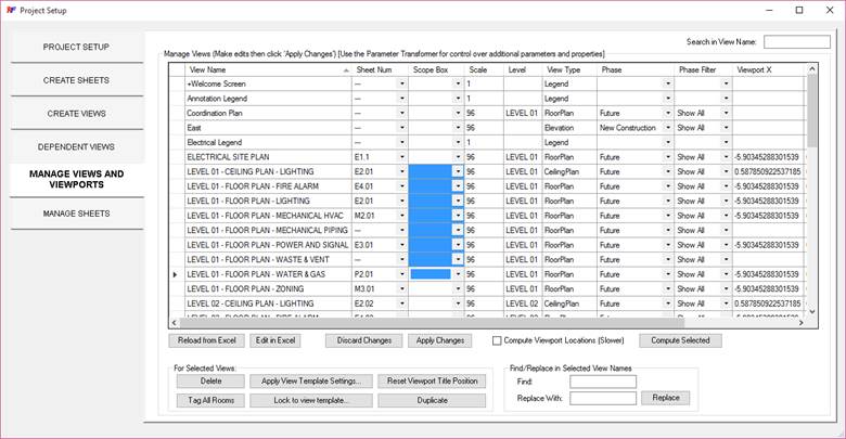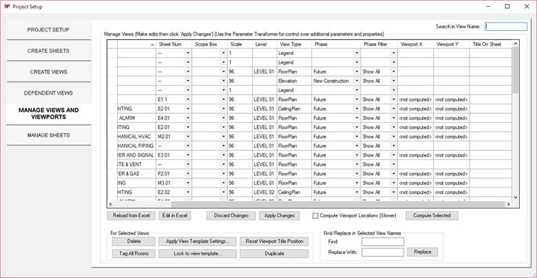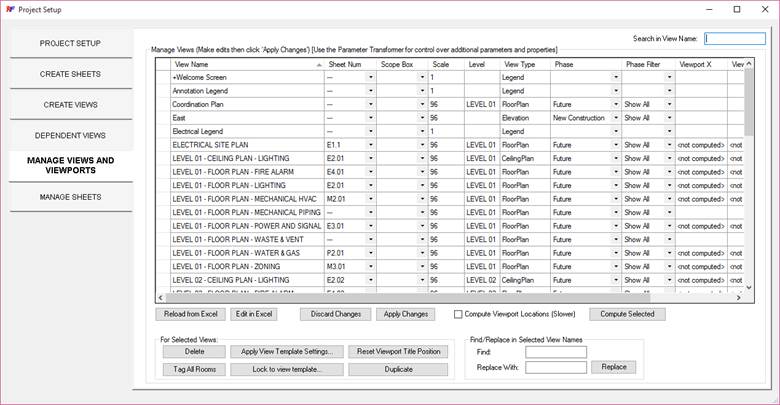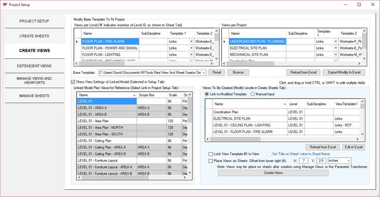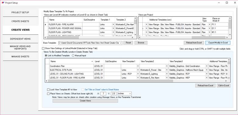 1. The create views tab works similarly to the create sheets tab in that you can edit lists in Excel or modify the templates to create your final view list from per-level and per-project lists
