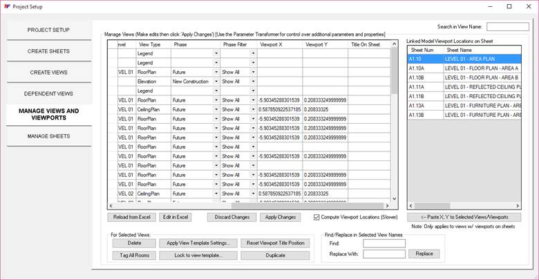 8. To use the viewport locations in a linked model, you can select the viewport in the linked model list then just copy that location to all desired views using a button. Note that setting viewport locations is a function that may take Revit a few minutes to perform depending on how many you are doing.